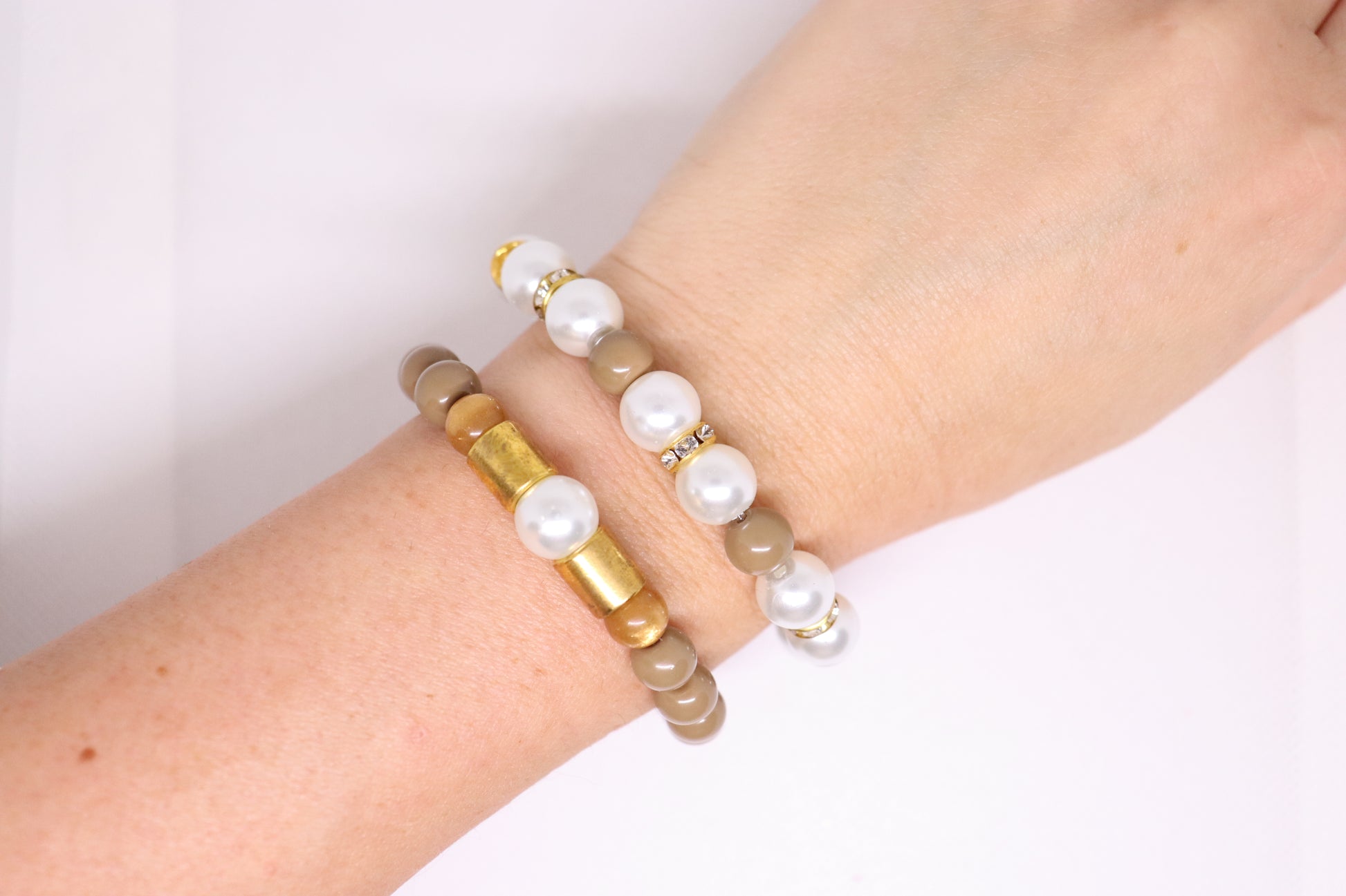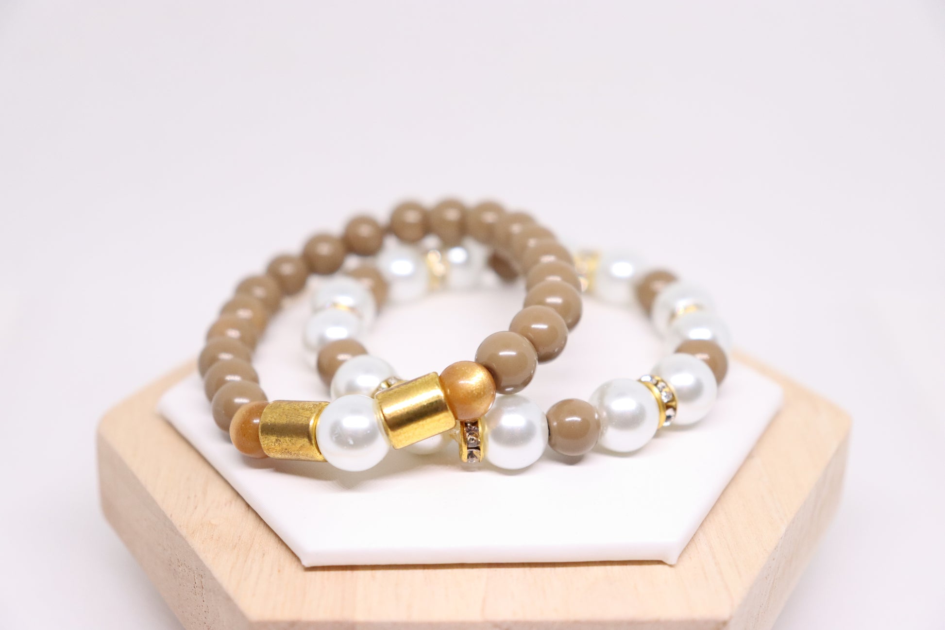 Armbandjes set bruin/wit